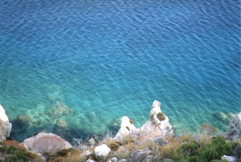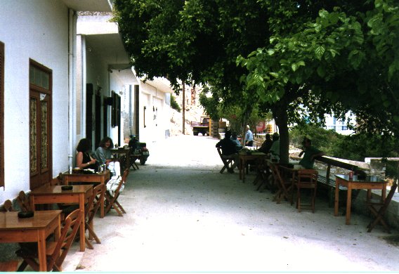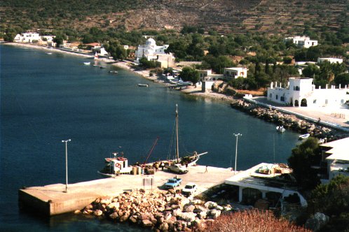 Geldwechseln geht nur im Postamt am Marktplatz - hat aber seit 1 Uhr geschlossen. 50 Meter auf der löchrigen Straße und wir sind am kieseligen Livadia-Ortsstrand. In diese Insel verliebt man sich erst auf den 2. Blick.